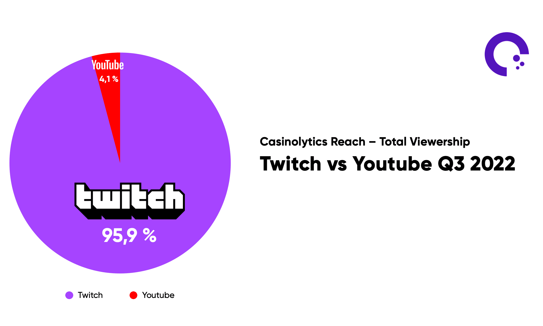 Looking at the total reach (viewership) between the two platforms in Q3 2022. Twitch represented a total of 95,9% of the total reach.